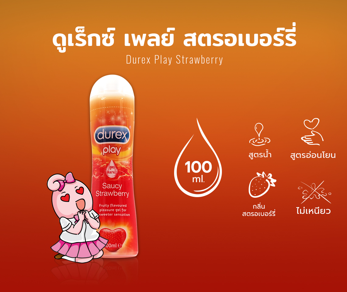 Durex Play Strawberry เจลหล่อลื่นสูตรน้ำ กลิ่นสตรอเบอร์รี่ อ่อนโยน ไม่เหนียวเหนอะหนะ สามารถใช้ร่วมกับถุงยางอนามัยได้ ล้างออกง่าย ไม่ใช่อุปกรณ์คุมกำเนิด