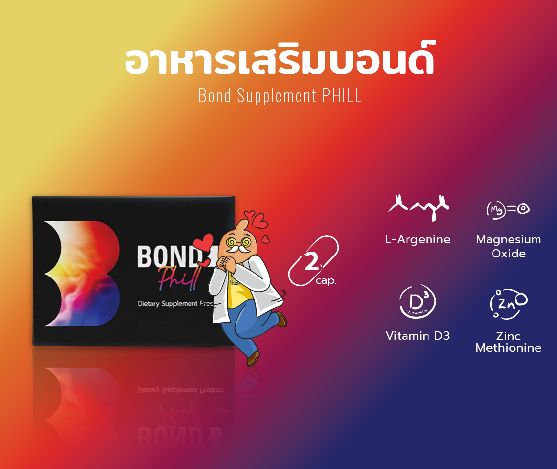 Bond Supplement PHILL ผลิตภัณฑ์อาหารเสริม อาหารเสริมสำหรับผู้ชายในทุกวัย โดยเฉพาะผู้ที่ต้องการดูแลสุขภาพของตนเอง 1 กล่อง บรรจุ 2 แคปซูล กินก่อนปฏิบัติกิจ 4 ชั่วโมง
