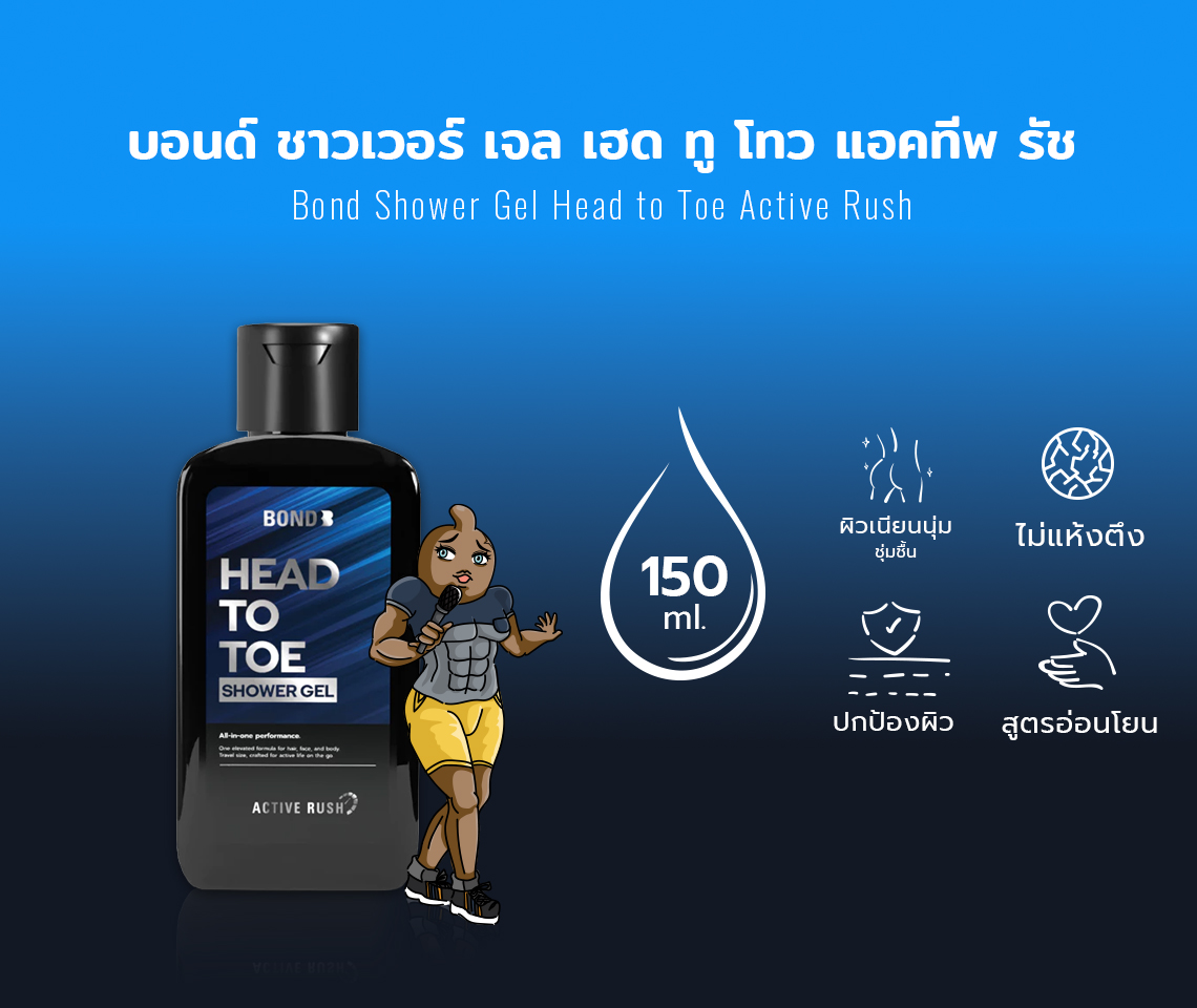 Bond x Ari Shower Gel Head to Toe Active Rush สบู่เหลวอาบน้ำ บอนด์ ชาวเวอร์เจล เฮด ทู โท แอคทีฟ รัช สบู่เหลวอาบน้ำและสระผม 2 in 1 สูตรอ่อนโยน ช่วยฟื้นฟูร่างกายหลังออกกำลังกาย