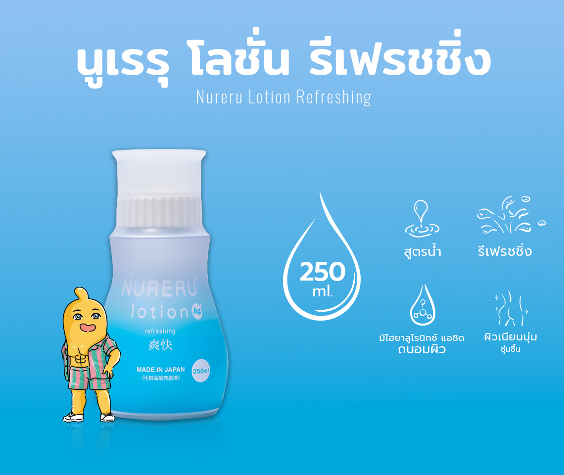 เจลหล่อลื่น Nureru Lotion Refreshing สูตรน้ำ เย็น ให้ความรู้สึกสดชื่น เจลหล่อลื่นญี่ปุ่นเป็นชนิดที่นุ่มเป็นพิเศษ ให้ความรู้สึกสมจริง เจลที่อ่อนนุ่มทำให้รู้สึกเหมือนน้ำหล่อลื่นสมจริงมากขึ้น และช่วยให้รู้สึกสบายผิวแม้ในที่ที่ไม่สม่ำเสมอ ใช้สำหรับช่วยตัวเอง หรือ กับของเล่น ช่วยซึมซาบเข้าสู่ผิวได้อย่างราบรื่น