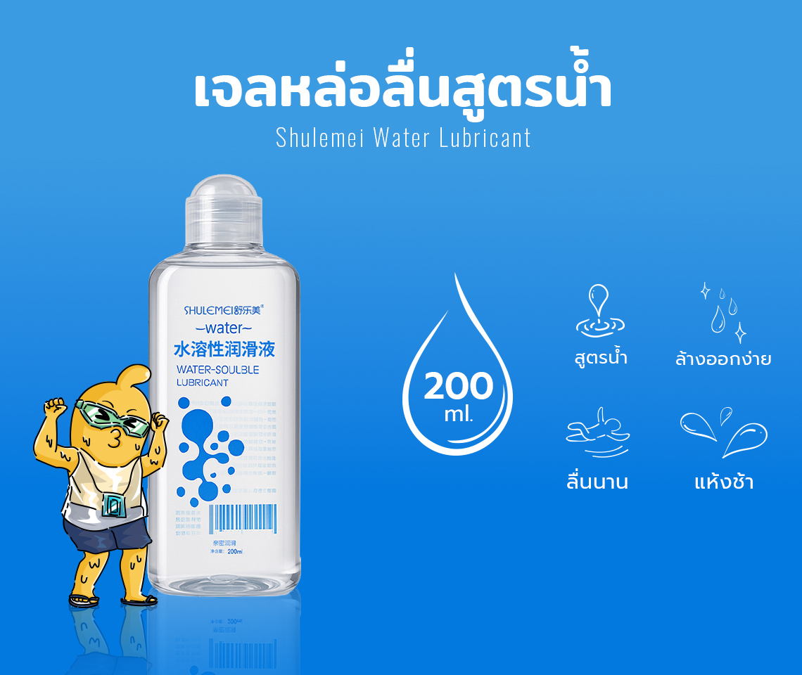 เจลหล่อลื่น Shulemei Water Lubricant เจลหล่อลื่นสูตรน้ำ เนื้อเจลใส ลื่นแบบธรรมชาติ ไม่มีกลิ่น มีประสิทธิ์ภาพสูงในการผิวชุ่มชื้น ยืดหยุ่น และสูตรนี้มีความอ่อนละมุน ลื่นไหลไม่เหนอะหนะ มีส่วนผสมที่อ่อนโยนต่อผิวและบำรุงไปด้วย เนื้อสัมผัสที่นุ่มนวล แห้งช้า สามารถเช็ดและทำความสะอาดได้ง่าย